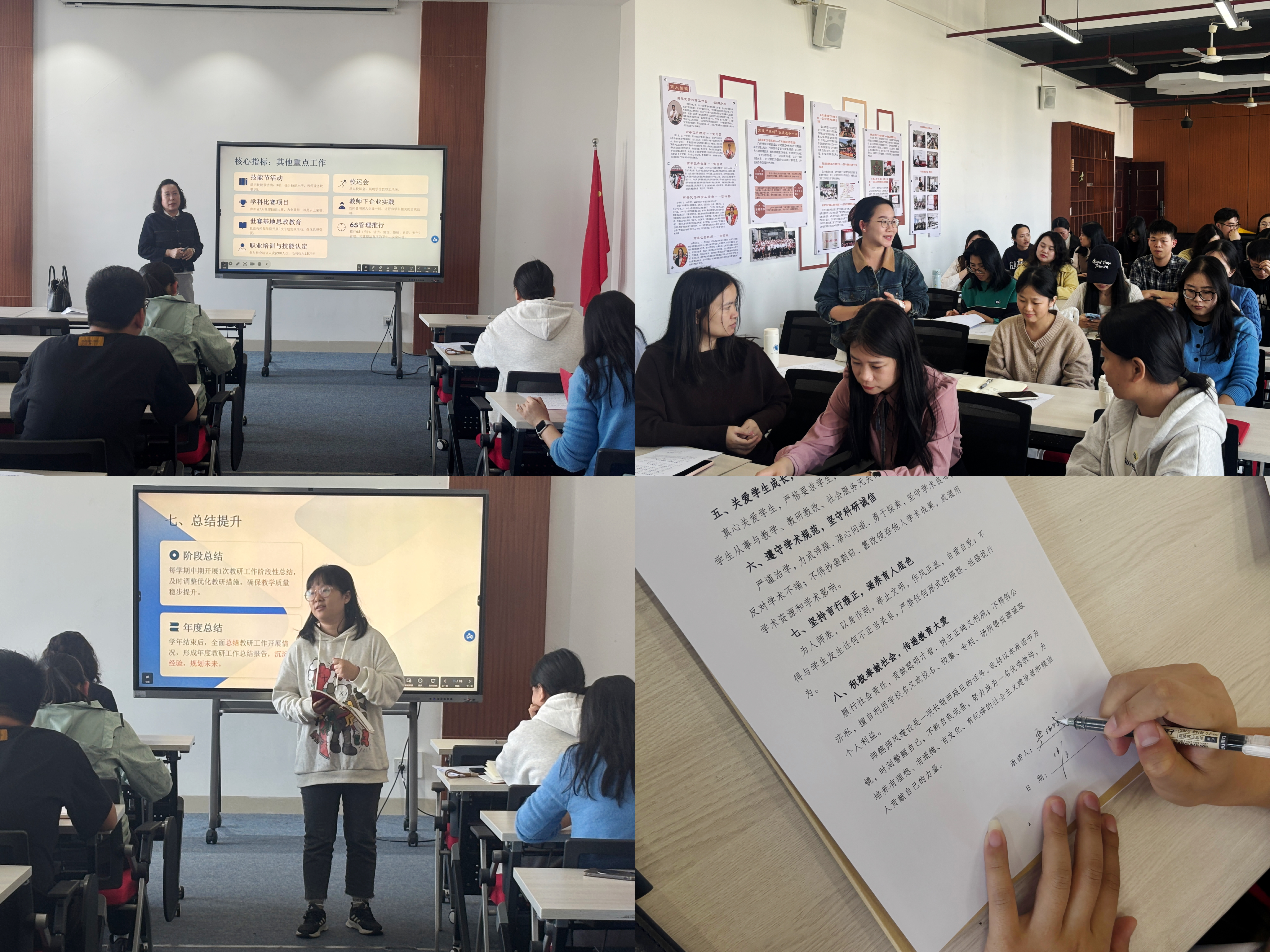 会议伊始,张琳对新教师的到来表示热烈欢迎,勉励他们尽快融入集体、积极参与各项工作,为部门发展注入新活力。随后她对新学期整体工作进行部署,围绕学校下达的工作目标,进行了详细讲解;她明确提出以立德树人为根本,抓好各项工作的落实。要抓好教研、深化课程改革、提升教师素养、规范教学管理,打造具有鲜明特色的教学改革。她还强调,要严格落实教学计划,规范课堂教学流程,推动思政课程与课程思政协同发力,促进公共基础课程与专业课程有机衔接,形成全方位育人合力。