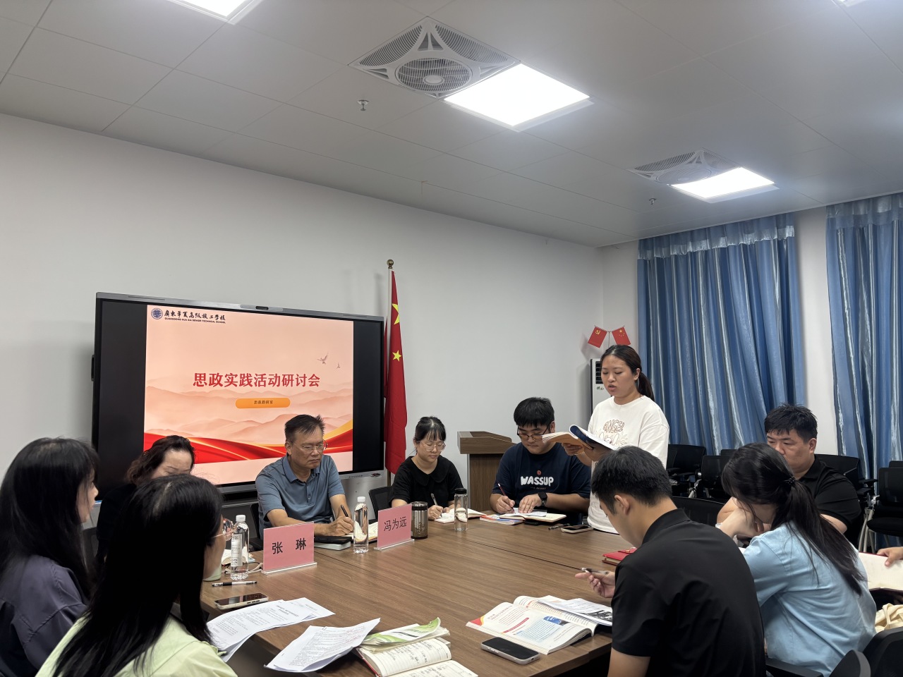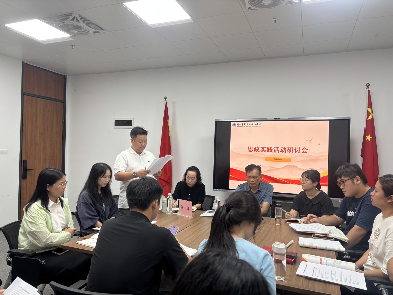 最后,张琳作总结发言,希望各位老师在今后的教学工作中,继续深化思政教学改革,创新实践教学方法,丰富实践教学内容,不断提高思政课的针对性与实效性,为培养德智体美劳全面发展的高素质技能人才贡献智慧和力量。