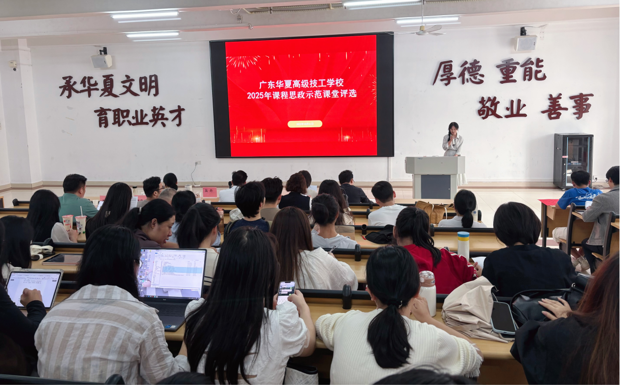 10月31日下午,为贯彻落实习近平总书记关于加强思政工作的讲话精神,进一步提升教师课程思政教学能力,打造高质量课程思政示范课堂,思政与公共基础教学部在实训楼2栋103课室承办我校“课程思政示范课堂”评选活动。学校顾问冯为远、副校长吴丹、教务处处长王学清、教务处副处长程先芹、督导质管办杨玉英担任评委,各系部主任及全校无课教师到场观摩。